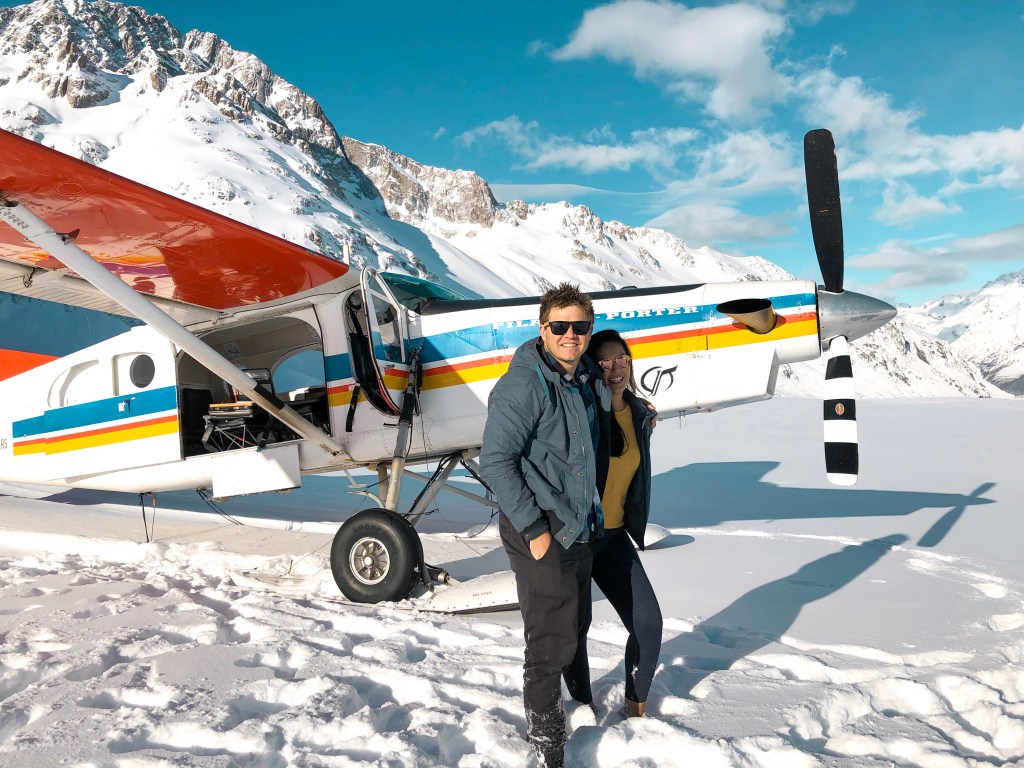 We didn’t ski, but we did take a plane ride overlooking the snowy mountains.